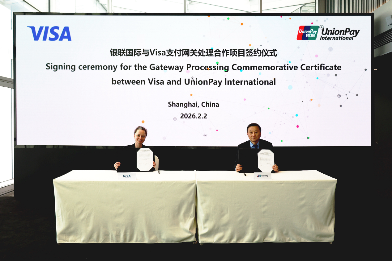 2026年2月2日,银联国际与Visa在上海共同宣布,双方达成跨境汇款战略合作。此举将为构建开放包容、高效安全的全球跨境支付生态树立新标杆。银联国际首席执行官王立新,Visa全球高级副总裁、资金流业务产品负责人 Luba Goldberg 出席活动。