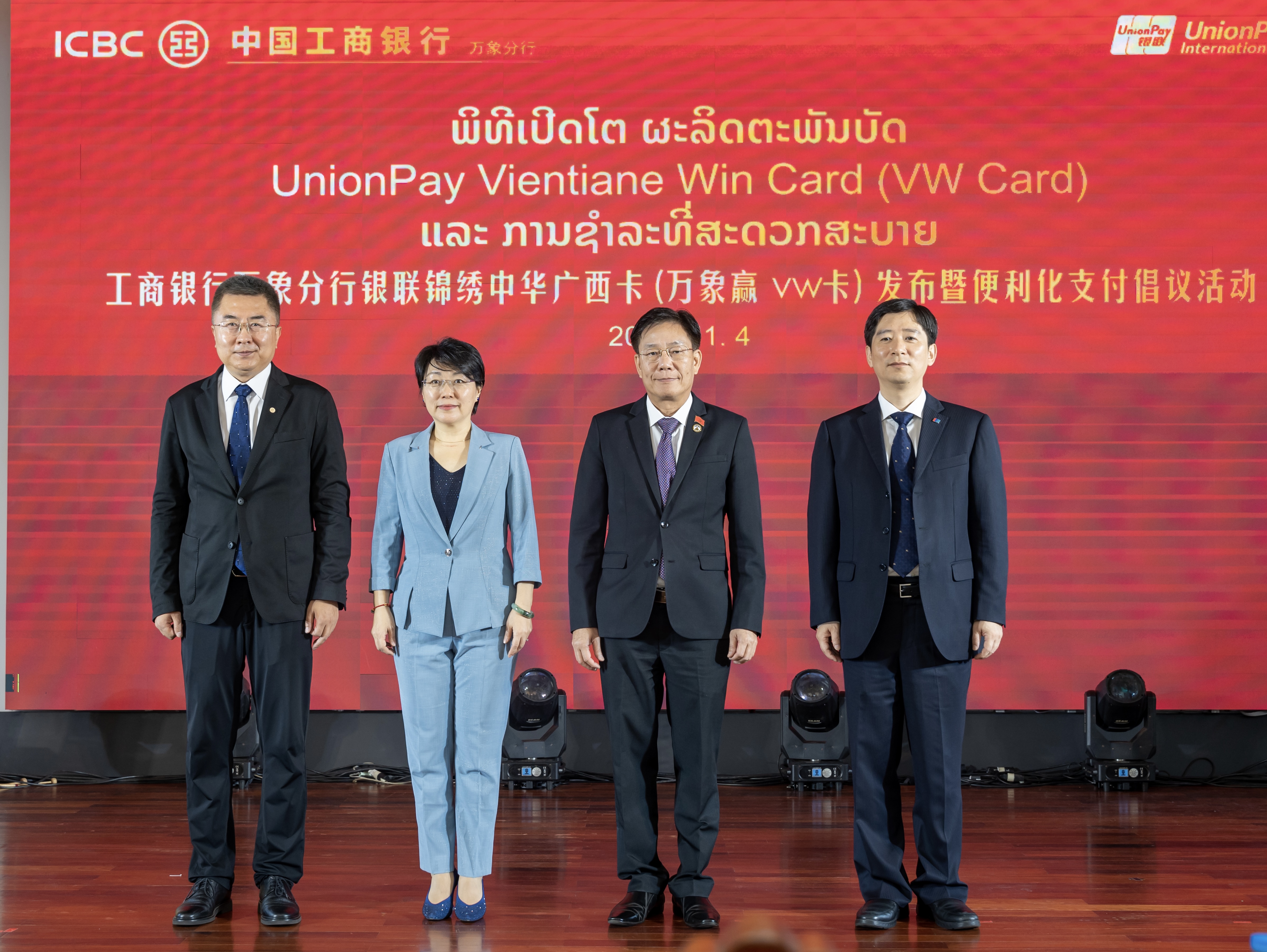 11月4日,银联国际与中国工商银行万象分行联合宣布,在老挝首次推出银联锦绣中华广西主题卡,旨在为老挝居民日常消费和来华旅行提供便捷、安全的支付服务。中国驻老挝大使方虹、老挝中央银行副行长阿伦·本永、中国银联总裁郭大勇、中国工商银行万象分行行长沈学勤出席发卡仪式。