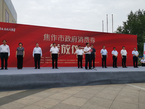 为进一步激发消费活力、提振消费信心、培育消费新动能,6月21日上午,焦作市政府消费券发放仪式在王府井百货广场举行。中共焦作市市委副书记、市长徐衣显宣布活动启动,市委常委、常务副市长李民生致辞,副市长王付举主持仪式,中国人民银行焦作市中心支行行长崔凯、中国银联河南分公司总经理汪博出席活动并讲话,银联商务河南分公司总经理张军出席活动。焦作市发改委、财政局、商务局等相关单位领导及辖内各银行机构主要负责人等300余人参加了启动仪式。